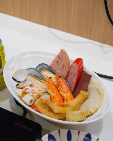自助雪柜位置都系丸类、肉类、海鲜、蔬菜、粉面。。。。居然有鸭血、蓝青口同鱿鱼花供应