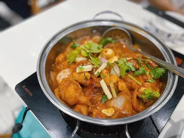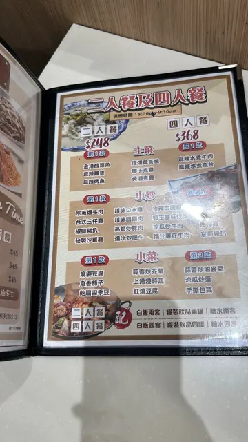 认识哩间餐厅系因为佢有一个好平嘅宵夜火锅放题。夜晚9点半后,宵夜火锅放题每人只系$72,不过就无肉,只系食火锅配料。想食肉的话,就$148,价钱上系几抵。就算正价时段都唔贵。原本谂住试下个火锅放题,去到先知原来仲有小菜二人晚餐,价钱亦唔贵。就改变计划,试下佢啲小菜。二人餐 ($248)套餐包一个主菜、一个小炒、一个小菜、两个白饭,仲有饮品 同 糖水。小菜选择多,唔系得两、三款拣。除返开每人唔洗$130,算几抵。金汤酸菜鱼酸菜鱼份量拍得住平时嘅二人份,一样有酸菜、芽菜。但系鱼嘅份量就相对少啲,同埋好碎,啲鱼肉散哂。台式三杯鸡三杯鸡酱汁煮得惹味,不过入唔到落啲鸡肉度,唔系太好送饭。蒜蓉炒芥兰芥兰睇落炒得唔错,上菜嘅时候都闻到几香。但系啲芥兰无预先处理过,食到有苦味。餐厅服务无网上面写得咁差,但系食物质素麻麻,得个「平」。最后上埋碗糖水,个糖水好淡,加咗好多水。食咗一啖就放低,唔推荐 😟…查看更多