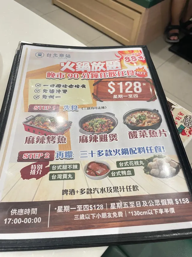 話說咁啱經過,見$138又有烤魚又有雞煲又有酸菜魚,之後又有得打邊爐,仲有90分鐘。即刻上openrice睇評語,見130個笑笑,幾個喊喊,心諗應該無死啦。我都知我貪平,咪試下囉。最終只能講句:未試過吃一餐。全場差不多8成食材都唔係新鮮,亦有異味,可以放入口可能係公仔麵。連蜂巢豆腐都可以變壞、酸微微。出邊自助區食材賣相都勁差,好似放咗全日咁。嘢飲都十分難飲!服務員呃咗你入去之後,就態度差到極點。雖然價錢平,但切勿一試,後悔終生!仲只可以用現金!受罪啦…查看更多