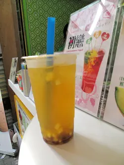 水蜜桃紅茶配粒粒菠蘿 -