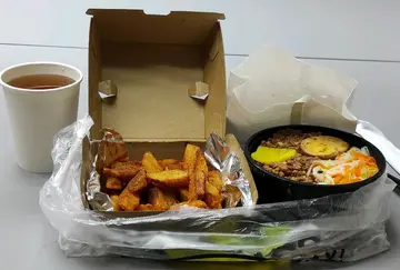 网上外卖平台外卖叫咗个新竹米粉同卤肉饭。叫𠮶阵都觉得好贵,又冇写新竹米粉有咩料,唔想再揾食咩就算数贵少少都落单。黎到袋野好细,我同男朋友都黑人问号,系咪送错?打开,系冇错嘅。$64嘅新竹米粉冇分汤,超级细兜,吸晒水,系水,因为成兜野都冇味,似病人餐!$75嘅台湾香肠卤肉饭,冇错,卤肉饭要$75。啲卤肉少到=平时食开其他舖头$25嘅细卤肉饭。条香肠就系一条普通香肠。最后一句,垃圾,冇咗晚市都唔应该咁冇诚意,转个大啲嘅兜,分汤,俾多啲汤我。我都冇咁嬲啦。