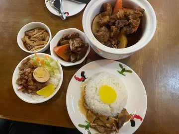 卤肉炖煮得入味十足,五花肉的油脂与酱汁充分融合,肉质鲜嫩且带有适中的油香。卤汁的味道香浓、咸甜适中,与米饭的搭配相得益彰。…查看更多