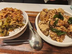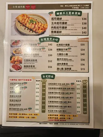 难得有风假,落波后就去荷里活广场行下,顺便一试好多人都赞好,入选咗《2024 2025米芝莲指南》嘅《台蔡卤肉饭》。佢嘅菜式唔算话好多,我听过最多人赞嘅系「花雕麻油鸡汤套餐」所以我哋点咗呢一个餐,再加两款小食。套餐包括「花雕麻油鸡汤」同「小碗卤肉饭」,饮品另外收费。「花雕麻油鸡汤」嘅味道都有带少少药膳嘅味道,同时带有花雕酒同麻油嘅香味,汤味非常浓郁,完全系台北嘅风味。另外套餐嘅「小碗卤肉饭」,猪腩肉肥瘦均匀,而且切得大小均一,肉腌得非常入味,好香好Juicy,米饭亦有咬口,捞埋个卤肉一齐就啱啱好。原本谂住系点两个餐,但我哋又唔想一人一个卤肉饭,所以另外叫两个小食好似仲化算。我地点咗店家表示香港第一嘅「九层塔盐酥鸡」,外皮松脆,鸡肉十分鲜嫩,而且好Juicy唔干,咸香味浓郁,就好似去咗台北嘅夜市啲盐酥鸡嘅味道,我谂佢系我暂时食过唯一一间完全系台湾味道嘅炸鸡,唔怪得佢咁有自信话自己系香港第一👍🏼。另一个小食系「肉松起司蛋饼」,响香港就冇食过,我去台湾时就不时都会食。佢个蛋饼好出色,蛋味浓郁,配合芝士同肉松,再加上面层嘅酱油,真系好邪恶,而且份量都唔少,只系$40蚊非常抵食。餐饮我点咗「柳橙茉莉绿茶」,加多15蚊,好过有嘢饮。店内有提供热水,系自助式自己出去斟水。《台蔡卤肉饭》都几另外大开眼界嘅一间台式餐厅,佢完全将台湾嘅味道带到香港,特别系佢个「花雕麻油鸡汤」,我曾经响台北一个夜巿食过系麻麻地,呢个汤系我想要嘅味道,我谂佢个「药膳排骨汤」会更加不得了。佢最正嘅系冇加一服务费,响香港嘅餐厅系比较少有。…查看更多