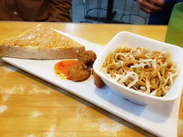 椰香酥吐司+墨鱼饼+肉燥捞面+珍珠奶茶($43)
