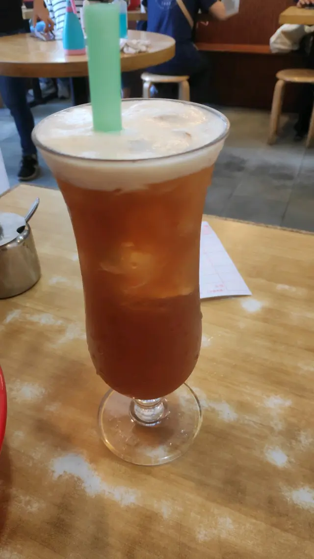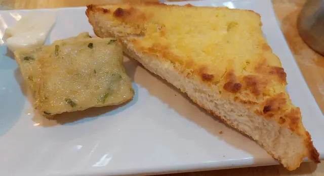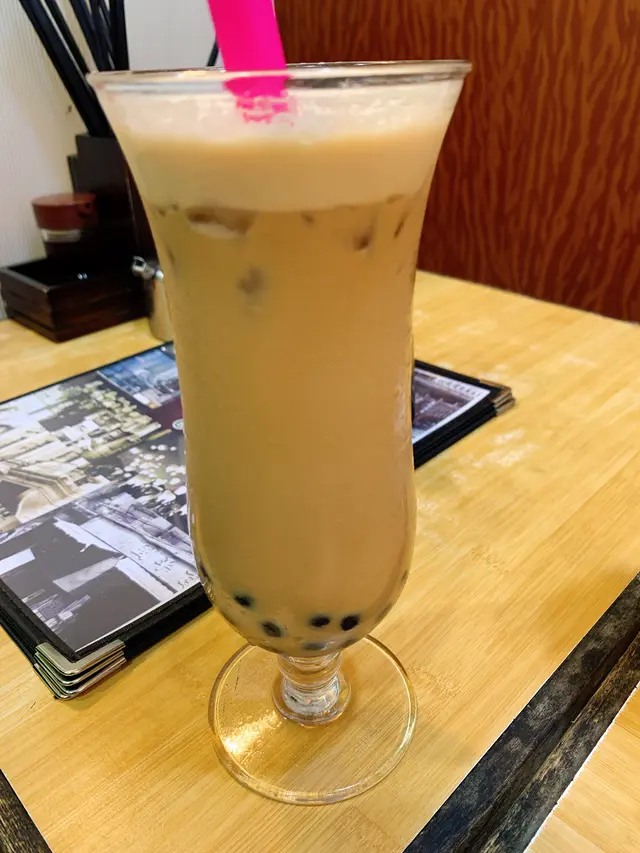 椰香酥吐司,厚切唔太脆,椰香味不濃,墨魚餅細細件,味道普通,只像普通魚餅肉燥不少且惹味,但有點難把麵拌勻,味道一般珍珠奶茶,奶茶大大杯,黑色珍珠軟糯有咬口,茶味不錯