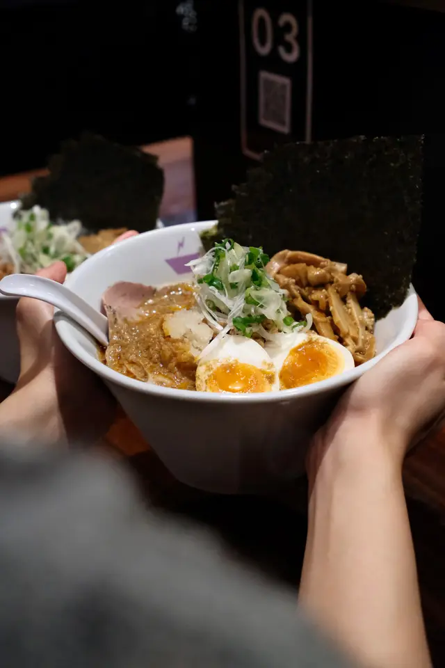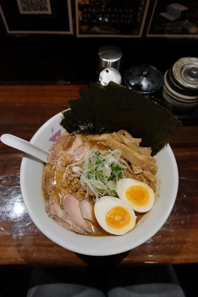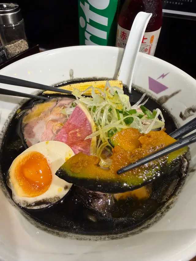 最近嚟大角咀博文街試咗呢間拉麵店新分店~ 性價比照樣都係咁高,尤其大角咀呢間新開,趁住未排咁長龍就食多幾次喇👍🏻🦑墨汁咖喱拉麵(辣)新推薦~ 湯底用咗墨汁調配,顏色黑黑哋但味道濃郁,咖喱辣度適中,微微辣但唔嗆喉,食落去有陣海鮮鮮香混埋咖喱香料麵條彈牙有咬勁,吸咗湯汁後勁滑溜,叉燒片嫩滑唔柴,溏心蛋蛋黃半熟流心~ 又真係幾正喎🌟特盛魚介豚骨拉麵招牌菜! 湯底豚骨煮得濃厚,魚介味突出,帶陣海鮮鮮甜,麵條煮得時間啱啱好,彈彈哋唔會太軟或太硬特盛加咗好多配料如叉燒、溏心蛋、海苔同玉米,叉燒肥瘦適中,肉汁鎖住,咬落去有牛香但唔油膩,溏心蛋蛋黃滑溜,性價比高…查看更多