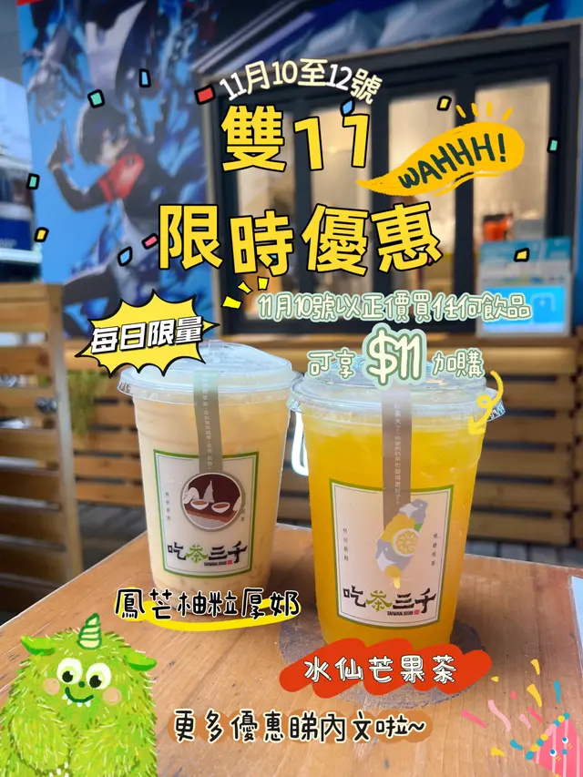 新出嘅葡萄柚系列👍🏻鳳芒柚粒厚奶🥭口感同味道層次豐富果茶底清新,同皇家厚奶+葡萄柚好夾尾調帶微酸,好清爽每啖都食到金鑽鳳梨同葡萄柚果粒個人覺得半甜最好飲水仙芒果茶✨水仙佳花茶底好出色加埋芒果果露十分清爽黎緊有雙11優惠,記低日子呀!!📣11月10號 以正價購買一杯飲品,可以HK$11加購一杯水仙芒果茶📣11月11號 以正價購買一杯飲品,可以HK$11加購一杯 #決明子百花香蜜📣11月12號 以正價購買一杯飲品,加配任何一款配料只需HK$2 (數量不限,特別飲品除外)查看更多