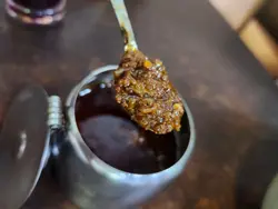 凌晨的将军澳街道格外安静,多数食肆早已拉下铁闸。「合兴咖啡粉面」仍亮著灯光。这家营业至凌晨两点的粉面店,填满了夜归人的胃。招牌牛筋米线,牛筋处理得极好,炆得软糯入味,胶质丰腴却不腻口,在唇齿间轻轻一抿便化开。牛腩河粉同样出色,牛腩选材讲究,肥瘦相间,带筋部位尤其弹牙。紫菜牛筋丸,牛筋丸爽脆爆汁,紫菜的海洋鲜香恰好平衡肉脂的浓厚,搭配得恰到好处。凌晨一点半,店内仍坐著几桌食客,外卖机响声过后,无耐外卖员就嚟提货。