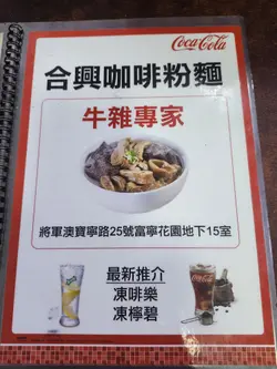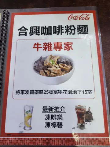 合興咖啡粉麵 (将军澳) 网址: https://s.openrice.com/QrLS0reK100 地址: 香港將軍澳坑口寶寧路25號富寧花園商場地下15號舖 电话: +852 22094678