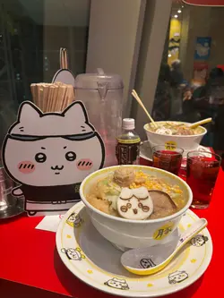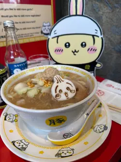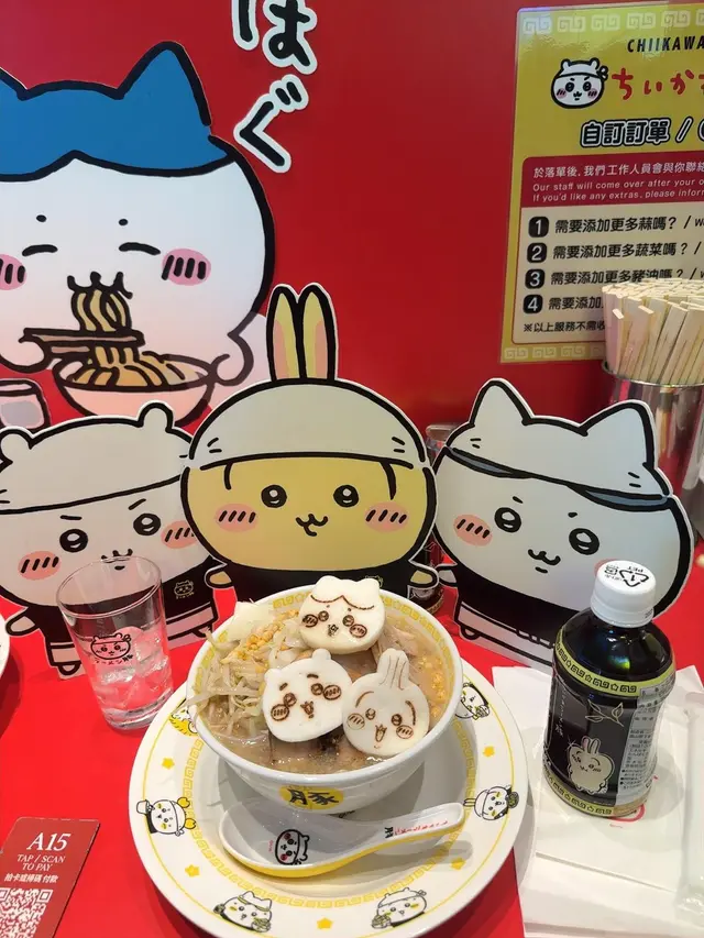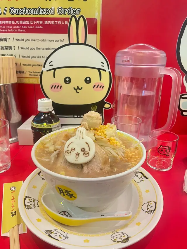 ✨今日推薦和介紹一間是以Chiikawa吉伊卡哇做主題的拉麵店,非常高人氣,大家需要透過網上預先預約訂座,因為真係好多人排隊想吃,就算訂座了也要排隊安排入座,今天幸好只需要等候20分鐘。✨️餐廳都好大間內有好多位,沒有用餐時間限制,而且周圍的裝修和佈置都是Chiikawa主角,例如:「兔兔,小八,小白,飛鼠等」超可愛,服務員也好人,就算他們好忙碌也會幫我們與Chiikawa拍照😍氣氛非常好,好像好多Chiikawa公仔們與我們一起吃拉麵😂好開心的感覺💯今次看到好多都是一家人親子帶埋小朋友們來用餐🥳✨️今次我們點選了一碗拉麵小(小八),另一碗是拉麵大(兔兔)。飲品叫了哈密瓜汽水和黑烏龍茶。拉麵小(小八)的麵底是200克,拉麵大(兔兔)的麵底是300克。我平時自己覺得自己都食得多嘢都差一點吃唔唒一碗300克拉麵,真係好大碗😂我們兩碗都是叫了多菜,多蒜,多豬油,多醬油。結果賣相成座山咁碗拉麵😂好多芽菜,豚肉一塊😆豚肉好厚身,有肥肉也有少需瘦肉,我就中意吃瘦的部份😂肥就讓給朋友吃吧😍不過濃底是香濃的,拉麵也爽口也是粗麵質,有口感可以吃到爽爽聲。拉麵賣相也非常靚,一定要相機先食吧😍✨️可能餐廳知道或預計到大家會食到「爽爽聲」,所以餐廳每人都有派圍裙給大家使用,就不用擔心彈到落件衫度了😍💯✨️餐廳仲有免費送Chiikawa 貼紙給我們取走留念。另外,餐廳也會按大家叫的拉麵給打卡專用小八,小白,兔兔道具,讓我們打卡拍照更靚。不過,今次我們也帶備了兩隻迷你小八公仔陪我們一起吃拉麵🤣真係好吃又好開心既氣氛,中意Chiikawa既Fans不要錯過🥳📍吉伊卡哇拉麵📍亞皆老街8號朗豪坊12樓13號舖…查看更多