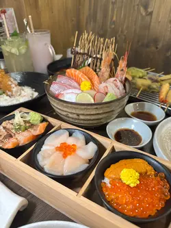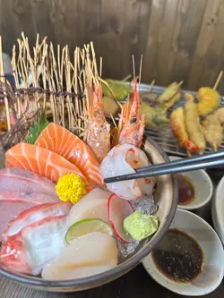 📍香港好少有咁抵食的串扬店,性价比之选~🌀 特上刺身拼盘五品拼盘有带子、大虾、油甘鱼、三文鱼、八爪鱼,全数日本空运✈️三文鱼同吞拿鱼拖罗厚切到🤫,入口油脂甘香。带子滑溜鲜甜!🌀 厨师发板吉列串扬拼盘 $99/10串等于5串价钱🔥 好似做紧半价咁抵食! 能品尝到紫苏鸡肉紫苏鸡肉、免治鸡肉丸、烟熏豚肉、鹌鹑蛋、大虾、多春鱼、鳗鱼、日本迷你甜薯、南瓜、冬菇等,蔬菜+肉类+海鲜一应俱全。面衣酥脆不油腻, 完全不含油! 特制和风酱汁微酸香甜。✔️推介:免治鸡肉丸 & 烟熏豚肉! 🌀 迷你丼拼盘 A+B+C三款迷你丼饭,细细碗啱晒想试多几款嘅你!12款选择包括蟹膏蟹肉丼、三文鱼籽海胆丼等高级食材~我拣咗三色吞拿鱼腩丼、三文鱼蟹籽丼、炙烧左口鱼边丼。左口鱼油脂丰厚,入口即溶🤤。妈妈大赞三色吞拿鱼腩,大腹、中腹、赤身层次分明,油脂甘香又鲜甜! 🌀 火炙黑豚肉叉烧拉面豚骨汤底浓郁,建议上枱即食好易淋!有两块超大圆形炙烧豚肉、温泉蛋、木耳丝,份量十足💯 🌀 擎天大海老打卡必点!📍虎虾长达26cm,炸粉超薄啖啖肉~虾肉爽口结实,渗出淡淡鲜味。底下仲有薯仔沙律,中和油腻感,贴心!🌀 荔枝鸡尾酒 & 日本苹果汁烧灼鸡尾酒清新唔腻,酒味唔重~餐厅仲有生日优惠🎉,订枱即送特大杯果味烧灼梳打🫶🏻…查看更多