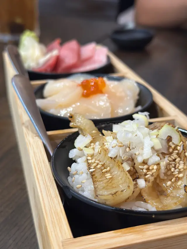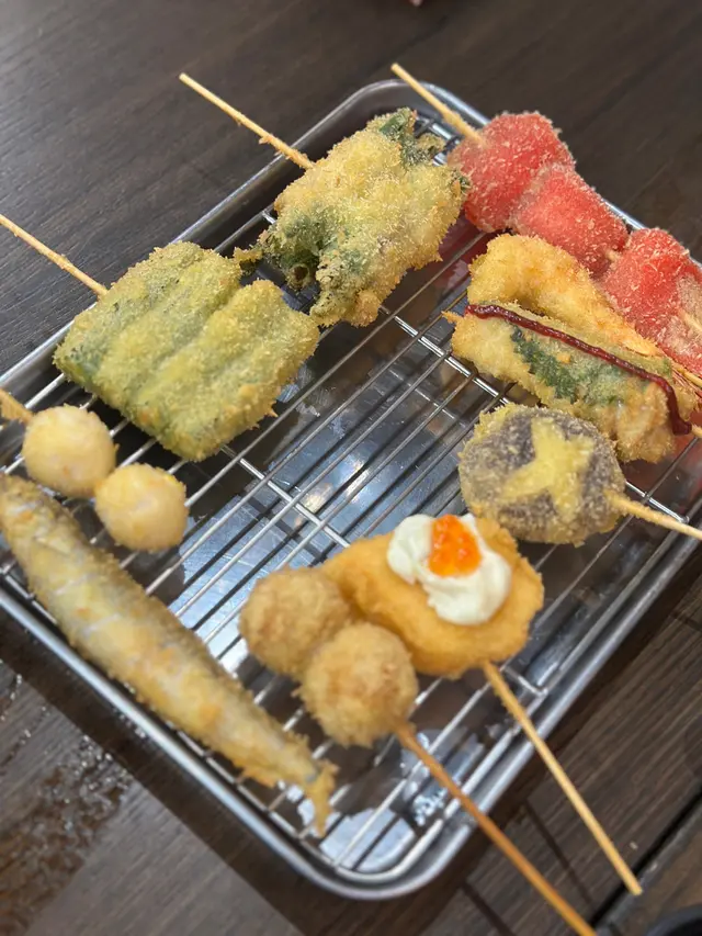 大角咀嘅🏮吉勝吉列串揚專門店,真係一間🥢唔錯嘅小店,亦係香港少有🌟嘅串揚專門店。簡約舒適🪑嘅日式風格裝潢,就好似置身🇯🇵日本居酒屋咁,牆上掛滿日本元素擺設🏯,燈光柔和而溫暖💡,整體氛圍好有Feel😊。呢度飲品🍹方面,除咗有啤酒🍻買一送一優惠之外,仲有生日優惠🥳,訂枱會送特大杯果味燒灼梳打🍶。我哋揀嘅沖繩海鹽青檸🍋蜂蜜梳打酸酸甜甜帶鹹香☀️,清爽開胃;沖縄海鹽🧂梅子酢橘梳打酸度更高,微微嘅梅香同酢橘🤤風味襯得出飲品嘅層次感✨,兩杯都幾有特色係解膩嘅好選擇。特上刺身拼盤5品,包括三文魚🐟、油甘魚、八爪魚🐙、赤海蝦🦐同帆立貝,部分仲係✈️日本空運來嘅,每樣都好新鮮👍。厚切三文魚油脂豐腴甘香🥰,油甘魚無腥味、肉質富彈性,八爪魚爽中帶脆🌊,赤海蝦飽滿結實、鮮甜至極✨,帆立貝清甜細嫩😋,真係幾有水準。迷你丼🍚一套可以自選三款,三文魚籽🐟海膽丼鮮味濃烈、帶子三文魚籽丼海味香郁、🔥火炙左口魚邊丼香氣逼人,每個丼雖然係迷你size但食材十足🌟。$99廚師發板串揚十串真係抵到爆💰,外層薄薄嘅炸漿十分香脆✨,芥末牛柳鮮香帶點辛辣😆、紫蘇雞肉香味突出🍃、日本免治雞肉鮮嫩多汁🍗、豚肉蘆筍卷juicy爽脆、🐟三文魚嫩滑、多春魚油香濃郁、🥓煙肉蠔卷鮮味十足🦪、秋葵爽口、日本南瓜甜美🎃、日本茄子軟糯🍆,每一串都做得咁精緻美味😍,淋上店家自製醬汁💧,微甜微酸,十分之好食👍。我哋仲叫咗三款串燒🔥,豚肉荔枝香甜清新、👅厚燒牛舌心軟嫩好有牛味🥩、串燒鷄肉軟骨棒脆中帶肉香🐓,配埋生蛋黃食香氣逼人🥚。壽喜牛肉鍋十分之暖胃🍲,牛肉片入鍋涮一涮就食得🥢,配以自家調配嘅醬汁、葱段同豆腐,🥩牛肉鮮嫩多汁,鍋汁鹹淡適中,暖胃又暖心❤️。呢間店真係🥰麻雀雖小五臟俱全,🍢串揚抵食、刺身新鮮、環境舒服😌,難怪咁多食客特意嚟捧場👏!…查看更多