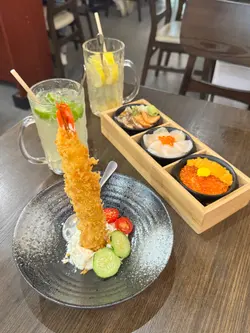 📍香港好少有咁抵食的串揚店,性價比之選~🌀 特上刺身拼盤五品拼盤有帶子、大蝦、油甘魚、三文魚、八爪魚,全數日本空運✈️三文魚同吞拿魚拖羅厚切到🤫,入口油脂甘香。帶子滑溜鮮甜!🌀 廚師發板吉列串揚拼盤 $99/10串等於5串價錢🔥 好似做緊半價咁抵食! 能品嚐到紫蘇雞肉紫蘇雞肉、免治雞肉丸、煙燻豚肉、鵪鶉蛋、大蝦、多春魚、鰻魚、日本迷你甜薯、南瓜、冬菇等,蔬菜+肉類+海鮮一應俱全。麵衣酥脆不油膩, 完全不含油! 特製和風醬汁微酸香甜。✔️推介:免治雞肉丸 & 煙燻豚肉! 🌀 迷你丼拼盤 A+B+C三款迷你丼飯,細細碗啱晒想試多幾款嘅你!12款選擇包括蟹膏蟹肉丼、三文魚籽海膽丼等高級食材~我揀咗三色吞拿魚腩丼、三文魚蟹籽丼、炙燒左口魚邊丼。左口魚油脂豐厚,入口即溶🤤。媽媽大讚三色吞拿魚腩,大腹、中腹、赤身層次分明,油脂甘香又鮮甜! 🌀 火炙黑豚肉叉燒拉麵豚骨湯底濃郁,建議上枱即食好易淋!有兩塊超大圓形炙燒豚肉、溫泉蛋、木耳絲,份量十足💯 🌀 擎天大海老打卡必點!📍虎蝦長達26cm,炸粉超薄啖啖肉~蝦肉爽口結實,滲出淡淡鮮味。底下仲有薯仔沙律,中和油膩感,貼心!🌀 荔枝雞尾酒 & 日本蘋果汁燒灼雞尾酒清新唔膩,酒味唔重~餐廳仲有生日優惠🎉,訂枱即送特大杯果味燒灼梳打🫶🏻…查看更多