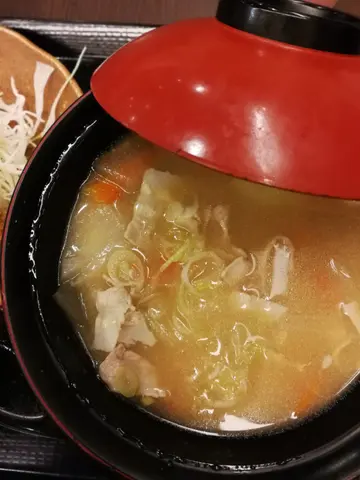 本人是豚汁超级大粉丝,除了它的味道本身可人,也因为有曾经被日本朋友家传豚汁招待过的情意结,故每次见到也一定会试。点的是大豚汁定食,这家的豚汁用料挺多,有葱萝卜洋葱大根片椰菜丝薄豚肉,几乎啖啖都吃到材料(但好像没有豚汁必有的食材:牛蒡),味噌汤底乃略淡口味,由于提供豚汁的地方不多,喝上觉得幸福~根据日本朋友的说法,豚汁合适冬天喝,因为有肉在其中比较暖身,而这家的豚汁上菜时只是温暖,如果能烫一点会更满足。定食配了炸猪扒和饭,猪扒的炸粉不算很厚,吃上去还有少许juicy感,只是算不上很有豚肉味,如果没有豚汁,吃著应该会觉得挺干。饭是珍珠米大盛,挺有嚼劲,吃不完便干脆倒进汤中,是另一种滋味。(纯个人喜好XD)另外点了铁板生姜烧猪扒,这个味道略嫌普通,尤其是用铁板上却完全没有"滋滋" 作响这一点,跟碟上没两样,而附上的蒜粒没有味道,生姜烧酱汁也是偏淡。总结是,人家名叫とんかつ,还是乖乖点炸猪扒吧。等位点菜上菜整个过程挺快,价钱算是合理,也不失为一个不错的晚饭选择。…查看更多