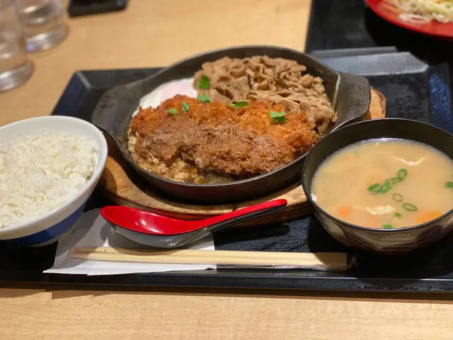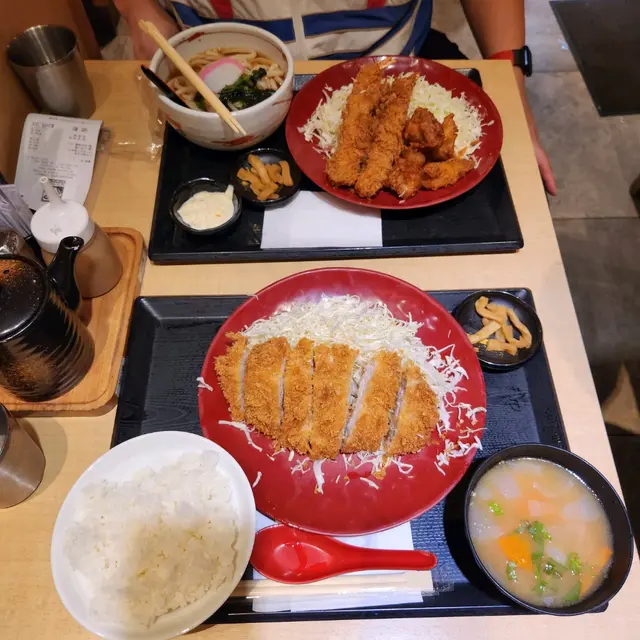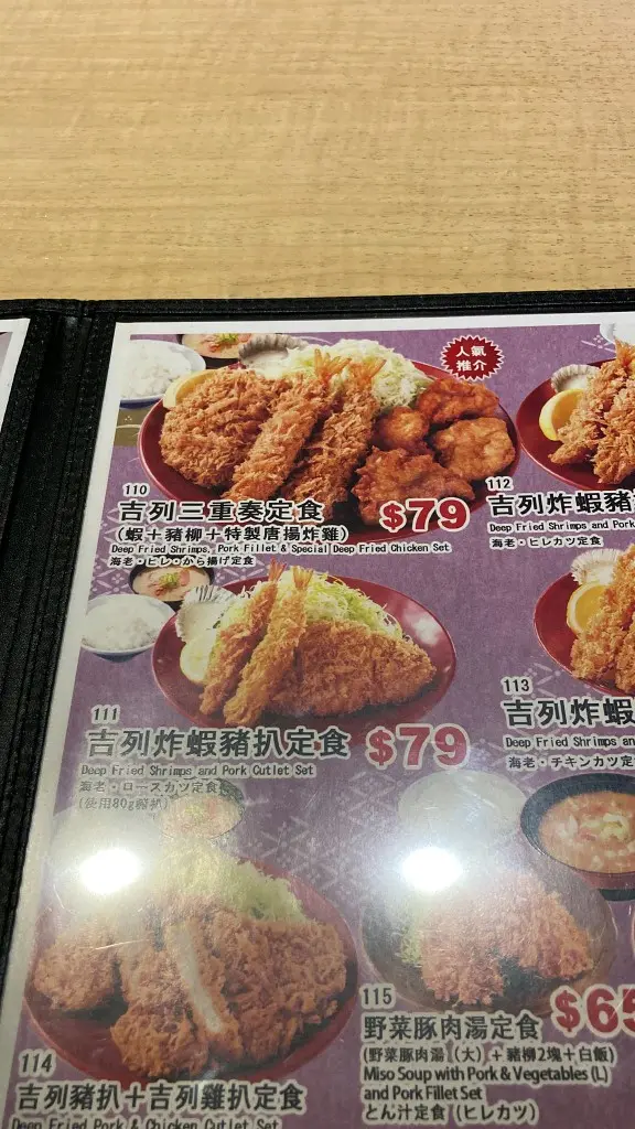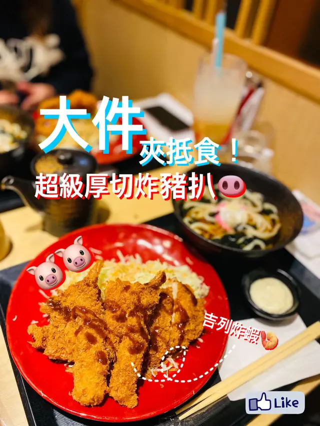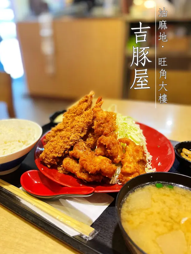 同老公去油麻地行街,行過比佢嘅櫥窗的食物模型吸引住,咁就入去試一試先。其實呢間餐廳已經開左有一段日子,地理位置很好,就在地鐵站出口附近,價格亦合理。在日本係一間好出名嘅連鎖式吉列豬排專門店,喺全日本仲有超過300間分店,都有20幾年歷史㗎喇。安排座位坐下後,見枱面放有醬料,一樽係麻醬應該要嚟撈沙律菜,另一樽醬汁應該用係炸豬排上,我哋兩個人叫左兩個餐,無叫飲品,店員主動比左杯水我哋。吉列豬扒定食炸豬排即叫即製,香脆可口,脆皮緊密附在豬扒上沒有鬆開亦不油膩,豬扒味道標準沒有騷味,可惜有點乾欠缺肉汁,白飯軟糯,口感甚佳,附送的湯和菜也不錯,以70幾蚊一個套餐嚟講,其實都無嘢好挑剔。雞扒牛肉壽喜燒鍋定食雞扒牛肉壽喜燒鍋定食原來塊雞扒係浸住啲汁上,食落已經淋曬!個壽喜燒仲有隻半熟蛋,用嚟撈飯都唔錯,牛肉同汁嘅味道都可以,如果雞扒可以分開上會更加好。味噌湯好濃味,但唔鹹,估唔到碗湯咁足料,好多蔬菜,仲有豬肉片同蒟蒻,好飲。總括嚟講推薦吃套餐,雖然佢哋嘅質素一定唔會係最高嘅級別,不會有超水準的期望,菜單上的照片看起來比實際的食物好看,大家如果有興趣嘅話就去試吓啦!唯一要注意的係餐廳只能以現金及八達通付款。…查看更多