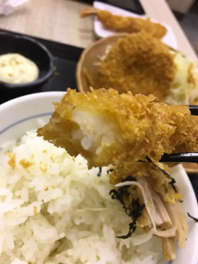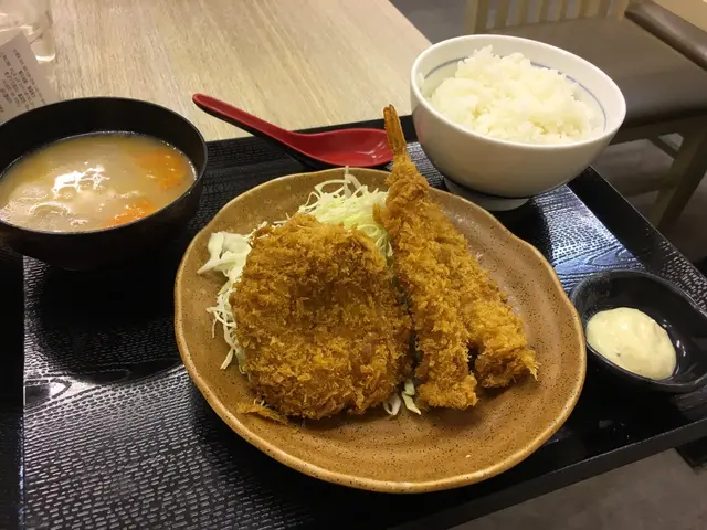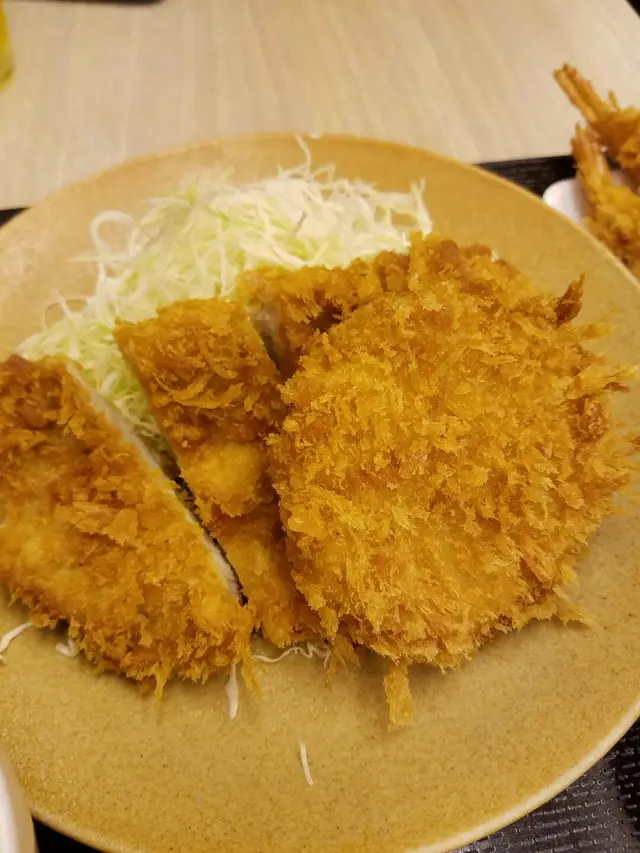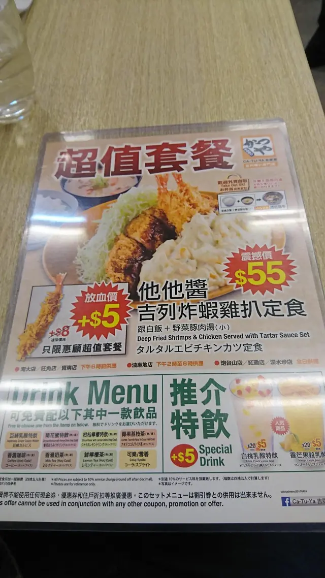 在家附近的這間Katsuya, 幫襯過兩次最近一次是四月底一次在家附近外勤工作時, 行過來睇下有什麼套餐可選擇?見有張大海報嘅日替定食咁吸睛就叫嚟試下啦,一試果然係堅大份量的套餐, 因為佢係一碟餸一碗飯, 個飯碗唔係酒樓的飯碗,其實係一個中碗大細, 飯都裝到藍色線的位, 重係日本米那種特別飽肚嘅米飯,碟餸係一個小山, 放底係一撮半乾白椰菜絲, 由於半乾態度想唔沾多d醬都唔得炸衣好像比之前食的厚咗, 兩隻蝦被炸衣遮蔽下尺碼大了一個, 細碼變中碼, 蝦肉唔可以話點彈牙或者鮮味十足但就唔係梅蝦肉架囉, 豬扒有點偏瘦不過又無炸至乾柴,有濃味日式豬扒用的茄汁配搭即使唔係咩人間美味但都係一個唔錯嘅炸豬扒午餐重附送味噌湯, 無再加錢要飲品因為淨係咁都飽到頂住走了,五十幾雖然係比同一條街的其他茶記貴十零蚊, 但飯同餸都兩倍咁, 所以好難話佢貴, 而且坐得舒適, 可能呢頭做野嘅人唔啱食呢d炸野做午餐啦! 當日所見午餐時段坐唔到一半滿,不過,這店都做咗差不多兩年,應該可以繼續經營落去嘅!…查看更多