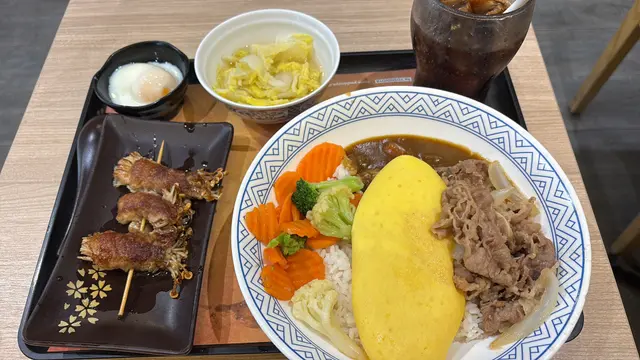 咖哩蛋包飯配牛肉丼