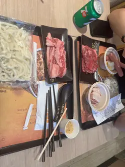晚餐求其同朋友去咗吉野家食饭,之后见到有𠮶个寿喜烧浓汤底火锅好有兴趣,分别加咗肠仔同埋芝士狗卷,一个点好搞笑,佢将两个火锅嘅牛肉放埋一碟,跟住同我讲话依间系特别啲要加$13同埋佢张poster嘅价钱系唔同,味道就不过不失,预先已经将配菜放晒入个煲度好容易滚泻寿喜烧汤汁好浓太多水,分别叫咗鸡肉牛肉同埋和牛,和牛油分适中配搭寿喜烧汤系好食,酱料剩系得芝麻酱略嫌有啲乏味,其他配菜都正正常常普通食饭时间冇咩人,如果用80几蚊性价比中规中矩不过不失,但系要分开返装