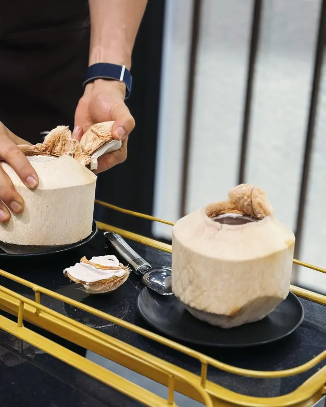 香港人真係好鍾意打邊爐,一年四季都可以打😆近年椰子雞火鍋大熱,發現荃灣都有得食。必點招牌湯底只有椰皇水再加椰青水,不添加水同糖份,店員即場倒出新鮮椰青水及刮肉去煲,倒入半隻招牌椰子文昌雞,再焗5分鐘,先飲湯再食雞🐔,個湯清甜到不得了,飲咗兩大碗,雞件皮爽肉嫩。跟住就食海鮮,蘇格蘭蟶子、游水鮮蝦🦐、台山靚肥蠔🦪、珍寶龍躉🐟、北海道元貝🐚、台灣脆鱔片🐠,即劏即淥好新鮮,尤其肥蠔淥完仲好大隻,肥美肉厚,龍躉片都好正。特選安格斯肥牛、西班牙黑毛豬肉、田園蔬菜拼盤,最後淥埋日本稻延烏冬,飽到十成😂估唔到甜品係懷舊芝麻卷,味道香濃,卷得好有層次,充滿童年回憶。每位$488(2位起)已包加一、服務費、醬油、茶芥紅酒或果汁一杯推廣期內一天前預訂享有九折優惠Read More