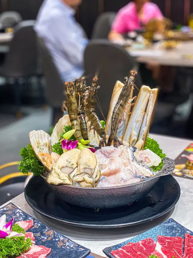 想打椰子雞邊爐, 所以就黎咗了~今次,先試下佢嘅 “星級火鍋 A餐” $488/位~2個人 啱啱好呢~ 招牌椰子文昌雞鍋 (半隻)2個大大椰青 同雞一齊黎;黎到我地面前 汁同肉放入去煲滾, 滾咗放雞~打邊邊 都有儀式感!沙漏計時, 轉眼間就食得;雞嫩嫩的, 無肥膏 皮薄肉厚, 唔錯唔錯~中左: 特選安格斯肥牛中右: 西班牙黑毛豬肉前: 日本稻庭烏冬豬同牛肉片嘅質量都好呀, 食落滿足, 忍唔住佢一片我一片, 好快就比我地清光喇~錦繡海鮮盛盤台山蠔大隻厚肉一對元貝都好大隻啊 鮮甜鮮甜的2款魚片都好食, 我地都無偏好呀~Read More
