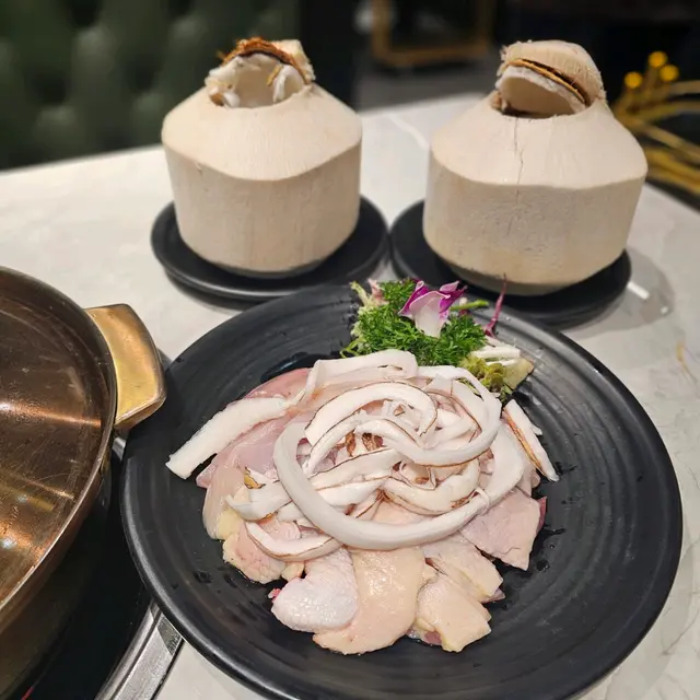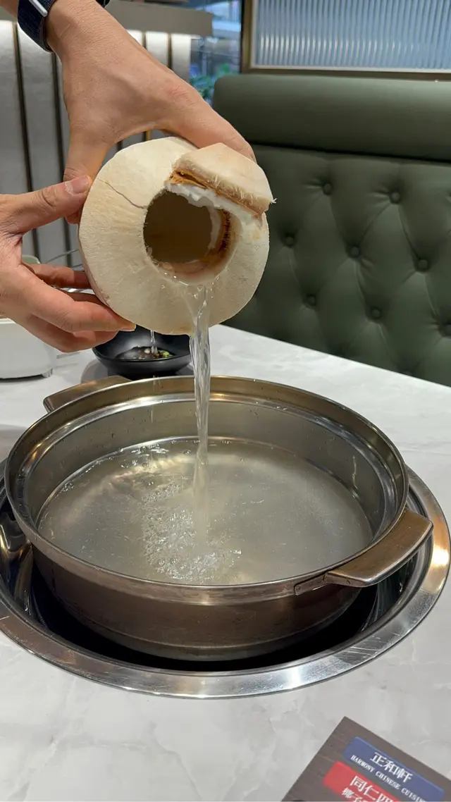 前排有朋友食過呢間火鍋,大讚佢個椰子雞湯好正,所以我又去試下!我地就豪少少叫左個每位$488 星級火鍋餐,呢個價錢包左加一同$12位既醬油錢,仲送一杯飲品。先黎招牌椰子文昌雞湯鍋,估吾到現場即時開2個椰青,倒椰青水落個鍋煲滾,一滴水都無加入去,連椰肉都會刮出黎放入鍋內。滾左之後就會放半隻文昌雞落去,到差吾多熟再焗一陣就食得!先飲湯再食雞肉,湯底非常清甜,椰子味好香濃,雞件肉質好結實,有咬口,而且好少脂肪,食得出呢隻雞之前經常跑動!呢個餐第二主角就系海鮮,佢地有自家魚缸,海鮮即叫即撈同即劏,保證新鮮,同埋啲海鮮非常大隻,鮑魚仲好有心機戒哂紋。美國安格斯肥牛有少少厚度,食上黎較有口感,都好重牛味。西班牙黑毛豬肉,食得出系有質素。日本稻庭烏冬蔬菜拼盤芝麻卷即刻蒸出黎,熱辣辣!個人覺得打邊爐最重要食材新鮮同靚,呢間既食材絕對一讚,個湯底都用心做,眼見基本上其他枱都系叫椰子雞湯就知道幾受歡迎!價錢可能比任食既貴,但一分錢一分貨,呢間貴都有原因既!Read More