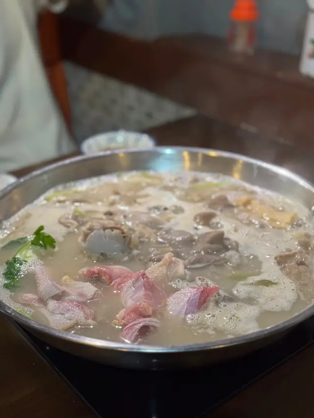 We arrived at midnight for late night eats. The food is tasty - I especially liked the taste of the beef and the fried dumplings were a highlight! You need to pay for soup base with is minimum $120 for cheapest - most soup bases are around $250. The cost-value for enoki mushrooms was good and you get a lot for the price. We cooked the meat/fish balls for a while but there was still some stringiness. The service was attentive and the waiter was patient with us as we were not familiar with what we were doing (e.g. washed our bowls with the hot water they provided). Final cost came to about $840 for half wagyu beef, selection of meat/fish balls, enoki, assorted vegetables, and fried dumplings. We had three people with us. It wasn’t very filling and was expensive but the food was still yummy. Wouldn’t go again but is a nice option if you need something open past 12am! …查看更多