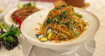 竹炭脆豆腐(2件) -竹炭粉混合脆浆油炸,乌黑酥脆带颗粒感外脆内嫩反差感惊艳 油温控制极佳不易回软拍照打卡神器(暗黑料理风)竹炭味较淡 主要靠视觉冰镇南非鲍鱼(2只)拼海蜇 -冰镇后肉质紧实弹牙 带有淡淡的花雕酒香鲜甜味自然 -海蜇口感爽脆透亮无杂质 咬落嗦嗦声 厚切蜇头配秘制麻油,脆度堪比新鲜黄瓜杏汁炖猪肺汤 -汤色乳白汤色乳白带琥珀光 表面凝结 杏仁衣 勺起挂壁如蜜糖 先嗅后饮 第一口 杏仁浓香席卷鼻腔 余韵 喉头回甘带轻微杏核苦香姬松茸炖鸡汤 -松茸的木质香气攻占鼻腔 鸡油与菌汁的鲜甜开始扩散 喉头涌现蜜枣般的回甘卤水鹅肉拼鹅翼 -鹅肉 纤维分明渗出琥珀色卤汁 吸卤透彻 表层卤香渗透肌理 蘸 潮州辣椒油 提升味蕾层次 -鹅翼 皮滑骨香,胶质丰富 骨缝溢出卤香 吮吸骨缝中藏有卤香髓汁,翅根肉最厚实 -卤水中南姜、八角、鱼露的复合香,无刺鼻酱油味 入口甜→中段咸鲜→回甘带药材香名人小炒皇 -食材堆成小山,油光闪亮 腰果金黄、鲜鱿卷曲外微焦内弹牙韭菜挺立不塌、虾干海鲜咸鲜、银鱼仔咸香脆口芋丝爽脆、菜脯脆爽 超级送酒送饭乳鸽 -皮脆 但肉不算嫩有点干身 药材味浓米汤杞子浸时蔬 -普通上汤白菜仔 汤底偏咸招牌捞面(少辣) -虾米仔虾籽再加上潮州辣油 咸香味俱全但略嫌过咸…查看更多