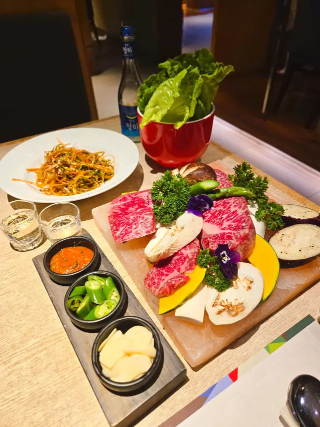 和朋友慶祝生日,特別選了這裏,希望景觀不錯,又可以坐耐啲,方便傾偈。選擇了假期最後一日來這裏,人不太多,所以可以直接坐窗邊卡位,景觀不俗。食物選擇都OK,我們點了韓牛,特別慶祝朋友的生日,侍應們十分好,幫我們如何煎這塊牛,不會浪費。牛嘅雪花均勻,煎出來味道濃郁,三個人淺嘗,我覺得都值回票價。三款不同味道的煎餅都幾好食,有三種口味,個人最喜歡食泡菜味道。另外配菜都唔錯,個飯都好食,材料比較豐富,整體嚟講不俗。…查看更多