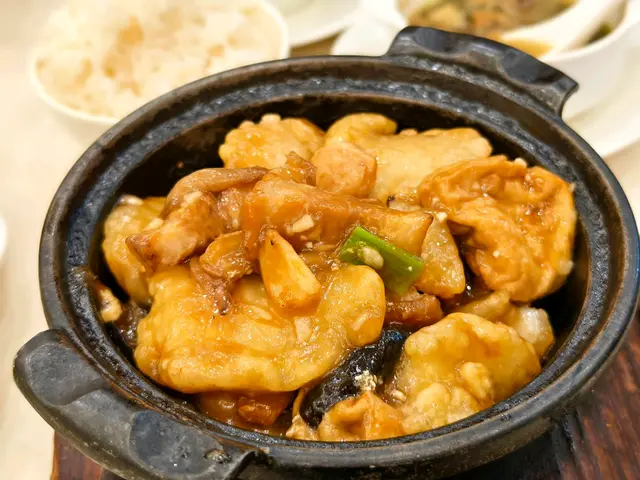 今日叫咗 2 個肉1個菜,通菜炒得好好味,炒得好有鑊氣,鮮魷都好大塊,就系鹹咗少少,不過配白飯就剛剛好! 豆腐火腩斑腩煲,呢個都唔差,斑腩都好大嚿,啖啖肉,豆腐鮮嫩! 菠蘿咕嚕肉,酸酸甜甜,比較開胃,咕嚕肉外脆內嫩和菠蘿酸甜兩者配搭,完美無窮,加上少少青椒,真系可以食唔停! 這間佢離上堂嘅地方都幾好近,方便!…查看更多