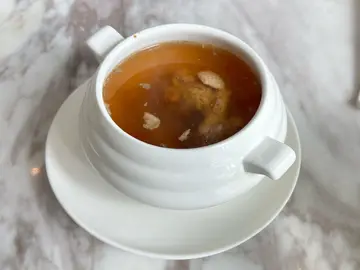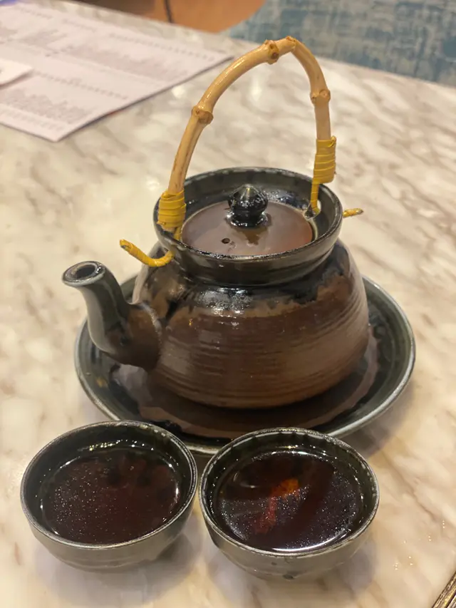 如果行街行到攰、肚饿又唔知食乜嘢,呢间系一个好选择!朋友之前嚟过,佢话今次少咗啲点心:(点心嚟得好快,冇漏单。只有虾饺、烧卖和鸡汤有encore。虾饺皮唔算薄,胜在够大只,虾肉爽;烧卖有只鲍鱼仔喺上面,有咬口;鸡汤清甜够热。当日只得鸡汤,冇其他汤作比较。炸物系预先炸好,攞出嚟系冻同索晒啲油,咬咗一啖就放弃。以宫庭妃子笑较好,外面粒粒仲有少少脆,里面流心奶黄。唔知用乜嘢准则,党参北芪浸鸡脚一份得两只;麻辣无骨黑鸡脚、港式混酱猪肠粉、泡椒鱼皮丝就一大碟