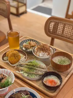 终于开到嚟西环啦❤️唔使去荃湾观塘食特登同两个朋友book枱食dinner一向劲钟意日式定食叫咗两个$99 set(2款热食、1款冷盘)、一个$119 set (3款热食、1款冷盘)每个set包一碗白饭同汤🍚餐汤有诚意,系忌廉蘑菇汤🍄🟫入面有粒粒香菇同洋葱粒——————————————《冷菜》▶️ 鲣鱼花椒风吕蛋x3温泉蛋遍生同水身调味上咸咸地但比较一般,倒落白饭食ok🥚可能是佢其他冷盘会有特色啲——————————————《热菜》▶️ 手打紫苏鸡肉豆腐丸子一共三粒丸子食落口感似肉饼,真系有豆腐成份紫苏叶味道几出👍🏻好𩠌饭▶️ 自信作!菇呢单刀乌糬福袋 (纯素)馅料满满嘅两个福袋😍外皮系腐皮/豆卜,朔尽酱汁酱汁较浓味且偏甜咗少少不过几钟意佢入面啲粒粒蘑菇同蒟蒻~▶️ 鸡皮饺子配香草柠檬腐乳酱▶️ 惹味酱烧茄子x2▶️ 鹿儿岛吉列黑豚肉饼▶️ 究极海苔粟米小船没有翻呢个有够特别,炸紫菜承载住一粒粒粟米-卖相非常精致,每碟小菜都花尽心思,睇得出精心设计同自家做💕唯一系佢炸物比较多,朋友觉得某啲小菜偏油咗少少🤏🏻环境舒服,餐厅装饰带少少昭和风,几适合同朋友聚餐店员有礼貌☺️价钱合理,冇服务费,喺香港食日式定食都差不多呢个价钱…查看更多