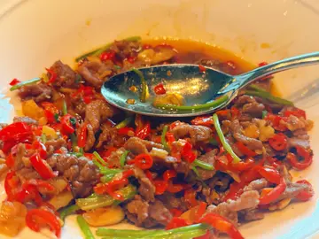 侍应招呼很好,我只是来外卖,他也招待我入内等候,还给我奉上茗茶,餐厅内的环境好好,可以欣赏到维多利亚港的景色,灯光有点昏暗,营造了好高级的感觉,就算外卖小菜都是即叫即起,所以等候了15分钟。回到家,立刻开饭,除了两个小菜,还有煎鸡蛋和白饭,两个小菜都非常好食,大家都超级赞赏,份量很多,足够三个人吃,总括,这间餐厅给我留下好好的印象,下次一定再来。第一个小菜是芦笋炒虾球,镬味十足,大虾非常爽口。第二个小菜是炒小黄牛,食出材料新鲜,加上辣椒好惹味。