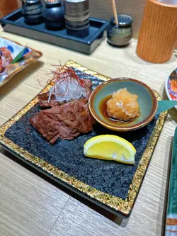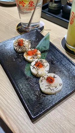 今次就去左中环日本人主理既【吟坐 炉端居酒屋】食晚餐,连厨师基本上都系日本人。关东煮:汤底厨师亲自调制、清甜温暖,豆腐同狮子狗吸饱汤汁,白萝卜煮到软淋入味,蒟蒻爽口,鸡蛋入味,简单舒服嘅日式风味~手打鸡肉丸串:鸡肉丸手工制作,口感扎实弹牙,烧到表面微焦,点埋月见酱汁(生蛋黄+酱油)更滑溜浓厚,必食!原条烧鱿鱼:原条鱿鱼烧到香气四溢,外皮微脆,肉质弹牙唔韧,点少少蛋黄酱同七味粉已经好惹味!西京烧银鳕鱼:银鳕鱼油润香浓,西京味噌腌得香甜,烧到表面焦香,鱼肉入口即化盐烧牛横膈膜肉:牛横膈膜肉味浓郁,盐烧简单带出肉香,口感软嫩中带嚼劲,油脂甘香。火炙葱照烧鸡丼:照烧鸡肉嫩滑,葱段火炙后香气爆发,酱汁甜咸适中,捞埋日本米饭食,满足感爆灯。可尔必思冲绳柚子梳打:可尔必思酸甜清爽,加入冲绳柚子香气,梳打气泡感十足,解腻又 refresh。味增焦糖布丁:布丁口感丝滑浓郁,蛋香十足,面层焦糖脆片带微微苦甜,特别之处系加入,咸香微妙咁平衡咗甜度。…查看更多