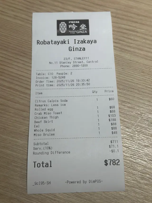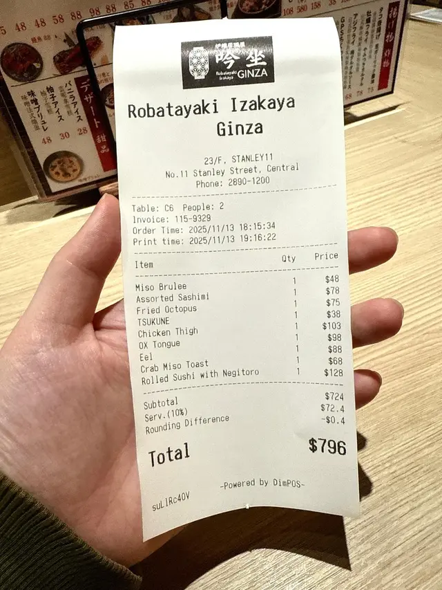 吟坐 炉端居酒屋 (中环) 网址: https://s.openrice.com/QrLS0XqmF00 地址: 香港中環士丹利街11號Stanley 11 23樓 电话: +852 28901200