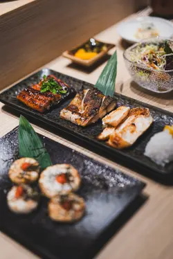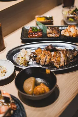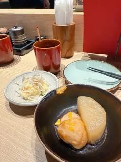正午陽光穿透玻璃窗,日本師傅正在炭火前翻動食材,抬頭時送來溫暖笑容:「いらっしゃいませ!」睇住幾位師傅喺炭火前專注翻動食材嘅模樣,真係除咗食物嘅香氣同埋味道之外,連視覺都有享受☺️🍱 午市定食$200+已包前菜三品,CP值超高!🥗 前菜三重奏▪️ 薯仔銀魚沙律賣相樸素,入口卻驚為天人!綿密薯泥撞上銀魚鹹香,醬汁悄悄昇華層次▪️ 關東煮嘅蘿蔔清甜無渣,吸飽高湯精華▪️ 粟米蝦丸彈牙得嚟帶粒粒玉米甜脆🔥 主菜盛宴▪️ TONTEKI厚切豬肩扒肉汁鎖到滿分,醬燒香氣撲鼻,特調醬汁甜甜地,好滋味!▪️ 三文魚腩魚籽定食油脂甘潤,加埋魚籽爆珠口感,鮮味咸香好夾▪️ 必點蟹膏燴飯!賣相吸睛,蟹蓋裝住燴飯同埋拉絲嘅芝士,蟹膏濃郁甘香🍢 單點驚喜▪️ 手打雞肉丸串混入軟骨,蘸透蛋液後入口嫩滑帶脆▪️ 蘆筍豬腩卷平衡感絕佳,肥腩肉油潤襯托蘆筍清甜查看更多