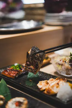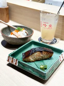 Lunch嚟到吟坐,坐到Bar枱位,可以望住日本師傅整緊燒物,又治癒又香,睇到流晒口水了~叫左兩個lunch set 再散叫左個鰻魚同蟹膏多士,lunch set都包幾多野,包括兩個前菜(白飯魚薯蓉+迷你關東煮)、沙律、麵豉湯、白飯,仲可免費添一次飯🍚 ✨吟坐名物原隻燒雞腿定食 - 外皮香脆、肉質嫩滑,成隻雞腿火候恰到好處,散發濃郁炭香🍗 ✨西京燒銀鱈魚定食 - 銀鱈魚以西京味噌醃製入味,烤至表面微焦、內裡滑嫩如奶油,鹹香中帶甘甜,十分惹味🐟✨燒鰻魚 - 鰻魚經炭火慢烤,外層焦香、內裡油潤,刷上秘製蒲燒醬汁,甜鹹交織,令人驚喜!✨蟹膏多士 - 蟹膏mix左xo醬,配搭特色,微辣又帶出蟹鮮,放上多士食口感滿滿🦀查看更多