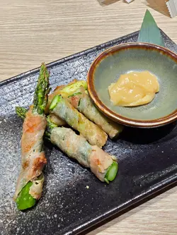 𨋢門一開,炭香迎面撲來。圍坐檜木吧檯前,看著師傅專注翻動串燒的火光,彷彿置身日本的深夜食堂。飲品:🍯 柚子蜜蘇打:柚香如煙花在舌尖綻放,蜂蜜的溫潤恰好撫平夏夜躁氣。🍊 柑橘可爾必思:乳酸菌的酸甜與柑橘清新共舞,所有暑氣消散殆盡。炭火綻放▪️ 蘆筍豬腩肉:甘肥豬腩肉纏繞碧綠蘆筍,炭火將肉脂逼入蔬菜纖維,咬下時爆出雙重鮮甜。▪️ 鹽燒豬五花:厚度恰好的五花肉烤出琥珀色脆皮,蘸點山椒粉入口,脂肪香氣與麻辣感在鼻腔共鳴。▪️ 雞肉棒棒配日式雞蛋:手打雞肉混入軟骨碎增口感,蘸取橙黃蛋液後更顯溫潤,是居酒屋的靈魂之作。▪️ 青椒仔: 翡翠色外皮烙上斑駁虎紋,香脆可口 。▪️ 黑鱈魚(西京燒):味噌醃漬兩日後炭火輕炙,魚肉如雲絮層層化開,甘甜餘韻縈繞不散。▪️ 大雞髀(切件):師傅刀工精準將雞腿肉切成適口大小,皮脆肉嫩還鎖住豐沛肉汁,貼心處理盡顯匠心。關東煮の撫慰🍢 大根:燉煮三小時的蘿蔔如琥珀通透,用筷子輕夾即斷,吸滿柴魚高湯的溫柔。🍢 炸豆腐:金黃豆皮如海綿飽吸湯汁,咬開時迸出豆香與高湯的雙重奏。終章美味🍚 鮭魚親子丼:醋飯鋪上炙燒鮭魚與晶瑩鮭魚卵,魚卵在齒間爆裂的瞬間,為今夜畫下華麗句點。查看更多