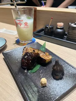 愈來愈鍾意食日本人主理嘅小店,食物水準🈶一定保證,呢間店舖面積唔算大,但坐落都冇逼迫感蟹膏多士將蟹膏拌勻,再放上酥脆嘅多士上面一齊食,每一口都都充滿蟹膏嘅香氣厚炸豆腐豆腐外皮炸得金黃色,裡面卻保持咗豆腐嘅嫩滑細膩,點上醬汁食就更滋味燒鰻魚刷上甜鹹適中嘅鰻魚醬,香氣四溢,鰻魚經過炭火燒烤,外皮焦香,內裡鮮嫩多汁手打雞肉丸串雞肉丸串點上蛋黃汁,口感彈嫩,非常美味牛舌切片薄厚適中,保留咗牛舌嘅彈韌口感,肉汁豐富鮮香西京燒銀鱈魚魚肉吸滿咗醬汁嘅香氣,經過燒烤後,外層微焦,內裡鮮嫩軟滑,令人回味無窮烤飯糰外層烤至微焦,內裡鬆軟,米飯帶有一絲焦香與微微嘅鹹味,絕對係必試飯糰之一火炙三文魚腩魚籽丼有2️⃣塊火炙三文魚腩,魚肉鮮嫩滑溜,搭配滿滿嘅三文魚籽,鹹香爆口,每一口都充滿層次感味噌法式燉蛋呢個比想像中香甜,口感細膩綿滑,好好味😋柚子蜜梳打酸甜嘅柚子蜜與氣泡水好夾,飲落清新爽口查看更多