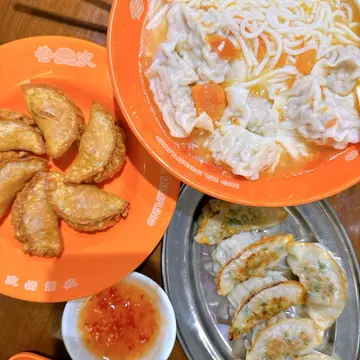 去完新田食晏,再落流浮山,成日落阵雨,基本上带住宠物唔想出街食晚餐,咁就喺返屋企嘅途中谂住喺新墟睇吓有咩外卖买返屋企食,跟住见到呢间门面几特别就买呢间。本来想试佢餐牌上面个葱油捞面,但系佢话而家冇做。因为实在太大雨,连个花胶鸡汤都唔记得嗌,有机会下次要试返。整体食物嚟讲,饺子系出色嘅,嗌咗个炸饺系韭菜馅,返到去个皮仲系脆,同埋咬落去爆馅多汁又够皮薄。另外汤饺跟猪扒酸辣米线个汤饺系芹菜鲜肉,都好好味。但系个猪扒就薄咗啲同鞋厚啲。藕饼就过火咗少少,墨鱼丸就正常。下次后天有路过屯门新墟,要试吓堂食会唔会再好食啲。