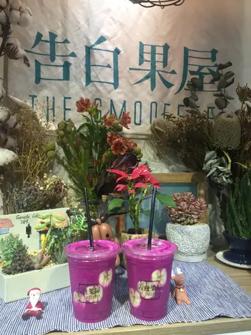中女扮文青,放工去左葵广,天气热加口干干,好想饮杯野refresh下,虽然周围泛滥珍珠奶茶,但中女年龄最好唔好旁晚仲饮茶同咖啡啦,好易心跳手震今晚眼光光训唔著嫁嘛! 见到小清新门面0既「告白小屋」就已经心心眼,标榜水果清新饮品,仲写埋有咩疗效,颜色仲配衬得鬼死咁靓,重外表既梗系要马上一试!最重要长期有五款推介饮品系买一送一,最啱姊妹淘!最后我哋试咗:1)杨桃乜乜乜-降血脂、消炎杨桃、火龙果、苹果、橙2)糊涂飞鸽水蜜桃🍑士多啤梨、提子、苹果、乳酪以貌取人协会理事都赞,用左香蕉🍌片/士多啤梨片装饰杯面,再配上粉红色、萤光桃红色、鲜黄色嘅果汁,斋用只眼睇已经令眼睛怀孕🤰🏻!饮落去不得了,先打果汁唔加冰,果然清新怡人