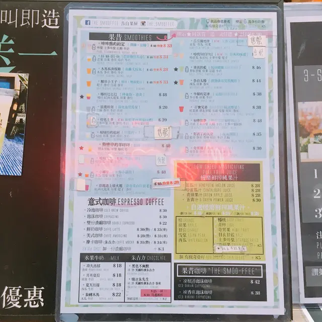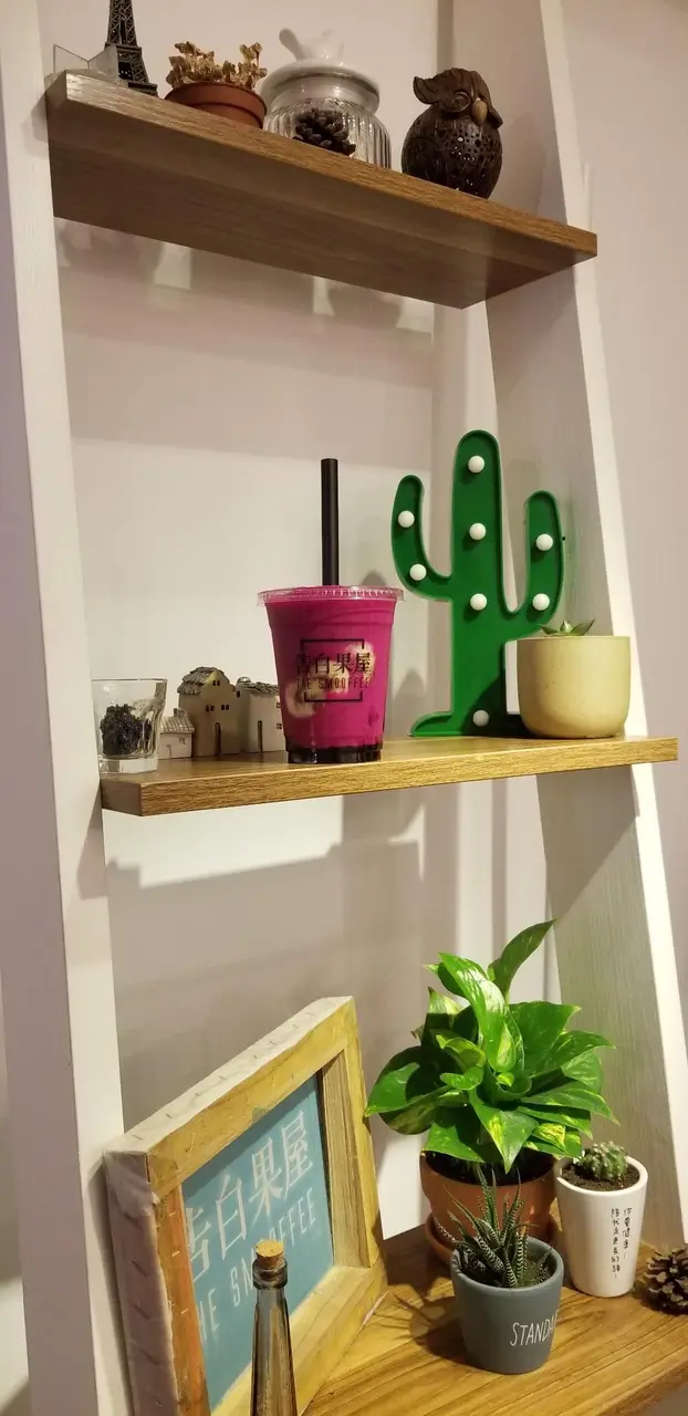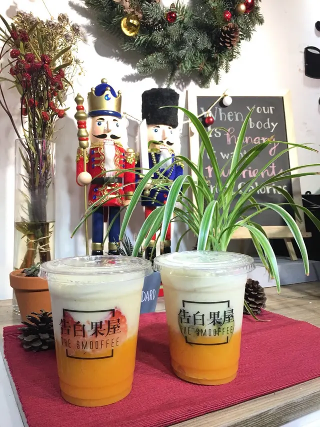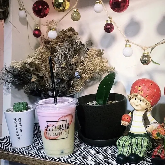 慕名而來,告白果屋。因為朋友心急想飲怕要等得耐,所以佢係我於另一間食店未食完野情況下走左過黎嗌定左先,諗住我食完岩岩好時間或者都要等多一陣,但我都盡快食完過去,聽朋友講男老闆(應該係)知道情況都會細心為朋友介紹下,同講有星號「★」既係買一送一,兩個人決定叫杯「小確幸」~去果陣見有d人但唔多,所以已經整好左擺定等我地去拎~見男老闆冇黑面,服務態度良好,幾好人,仲會講解可以點樣飲值得一讚:)「小確幸」呢個名字最近流行亦吸引,好似飲左會有小小幸福,入面材料:木瓜﹑雪梨﹑蘋果﹑牛奶+裝飾用兩細片草莓/奇異果。上面白色既係厚厚一層打完果汁會有既泡沫,男老闆話如果想下面木瓜味冇咁強烈可以用飲管搞勻等d泡同下面果汁混埋,我地就冇溝勻~味道:主打天然無添加嘛!黎之前已經清楚,所以唔會期望有加糖調較甜味…不過飲過生果店D鮮窄就覺得呢間生果既鮮甜味都冇乜,飲落真係淡偏似健康水…比喻的話就似食一件西瓜,冇西瓜肉既甜,只有近西瓜邊果種肉好淡既味…但各有各好啦!口感:沙沙地無倒塞細飲管既果粒,泡沫豐盈…甚至好似充斥成個口腔…建議一係唔飲一係搞勻哂先…不過搞勻又會唔同左味道木瓜:我覺得唔溝勻d木瓜味就岩岩好,唔係話好濃郁,朋友話怕好勁木瓜味,但佢冇溝勻覺得OK雪梨:少少,飲到佢有細細粒好似籽既質感蘋果:少少,木瓜味比較多牛奶:完全唔覺有奶係入面咁…黎之前見到有Openrice友post過餐牌,差唔多成個月都售罄同5款,究竟係唔出住定係真售罄。單飲價錢比較貴,覺得唔值呢個價…大概做得買一送一先SET到$40幾,平均$20幾仲可以接受到,。其他$30幾又冇做買一送一係咪真係好飲D呢?有機會再試下,但如果同款質素…真係又貴又唔值,服務雖好但係荷包緊要,就算光顧都唔會再買超過$30既飲品,只當冇野飲果時解渴算啦…查看更多