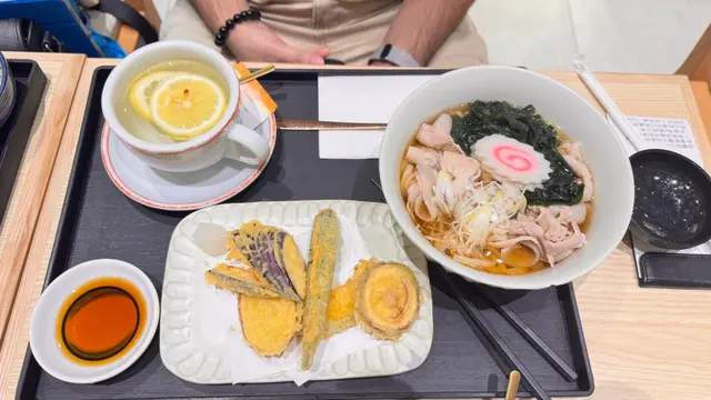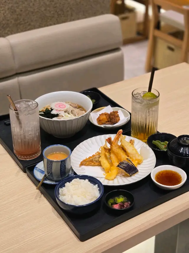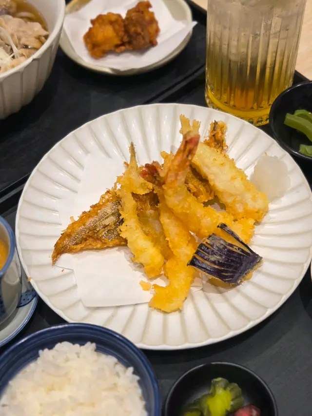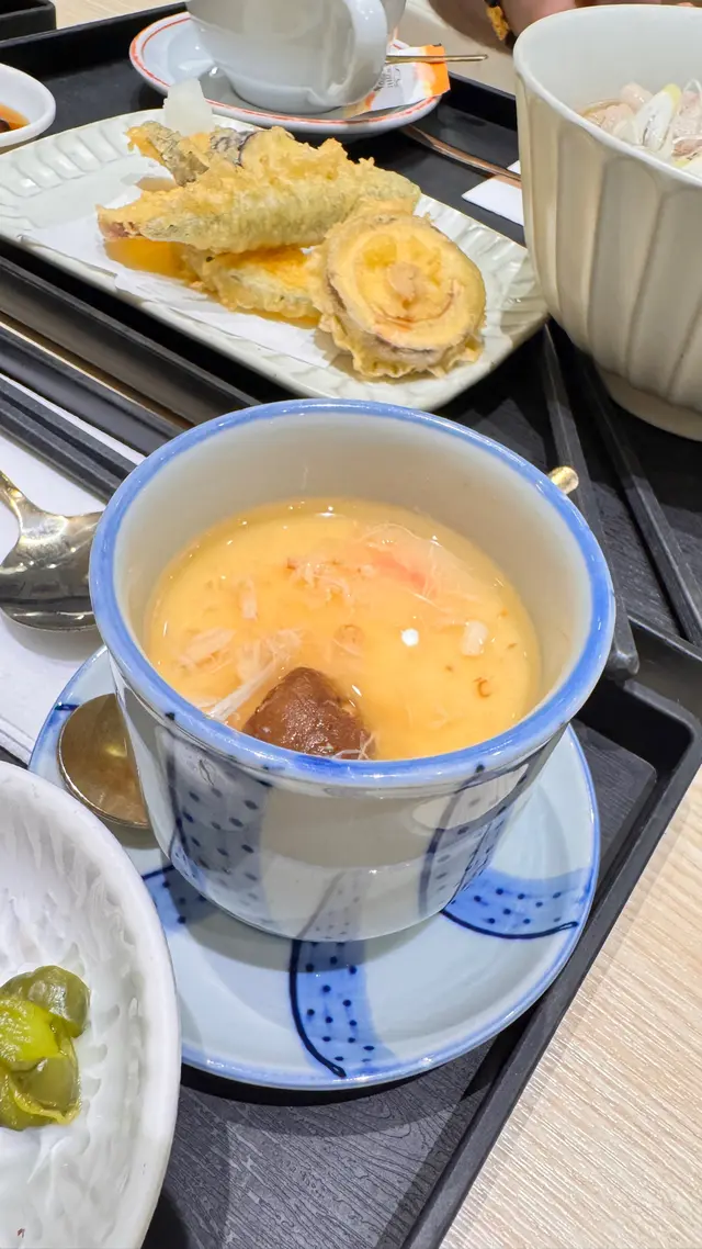 跟好姊妹👭去做facial💆♀️之前先去食個簡單晚餐,在銅鑼灣登龍街見到「味一食堂 Yummy House」門面光猛簡潔,就入去試下😊餐廳內裡裝潢以日式簡約設計為主,環境舒適,坐得也舒服,主要提供多款定食例如咖哩飯、烏冬、意粉、丼飯等,總有一款合你口味😁海老穴子沙𩺬魚天婦羅定食 $118這個定食🍱包括前菜、蟹肉蒸蛋🦀🥚、鹹菜、白飯🍚及味噌湯,更以優惠價$18加配了蜂蜜青檸梳打🍯🍋🟩🥤天婦羅有大蝦🍤、穴子🐟、沙𩺬魚🐟及茄子🍆,穴子肉質綿密細嫩帶微甜,沙𩺬魚肉質清爽,整體天婦羅口感酥脆不油膩,吃前蘸一點秘製的天婦羅醬汁,味道微甜,非常惹味🤩鹿兒島產黑豚肉稻庭烏冬 $98定食🍱包括前菜及小食,我同樣以優惠價$18加配了白桃梳打🍑🥤😊小食是香脆可口的日式炸雞🐔,黑豚肉以薄片涮煮🐷,肉質鮮嫰,口感嫰滑,份量足夠,配料還有海帶及魚板,配搭煙韌軟滑的稻庭烏冬🍜及清甜的醬油湯底,非常惹味🤍…查看更多