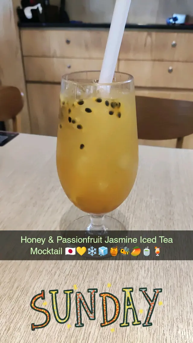 Honey and Passionfruit Jasmine Iced Tea Mocktail 🇯🇵💛❄️🧊🍯🐝🥭🍵🍹