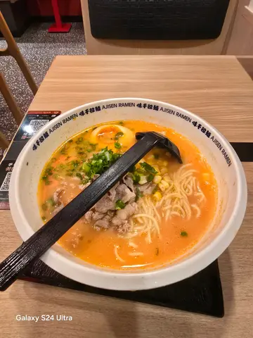 说真的,下午茶$38能吃味千拉面还有免费橙汁是很便宜便。 所以都不批评太多。。橙汁确实新鲜好饮饮是新奇橙汁的味道。粟米生菜蕃茄粒和面条也很多👍面条幼细容易咀嚼都有味道。 牛肉份量也不少,只是有点薄同比较腍,但是都没有什么奇怪的味道正常的。 一切都正常,只是汤底不知道太耐没有吃,有点怪,好像有啲汽水味的蕃茄汤。 总括来说,这个价钱吃到味千拉面也是可以接受的。。还有值得一提,店舖横装红当当的位置很漂亮…查看更多