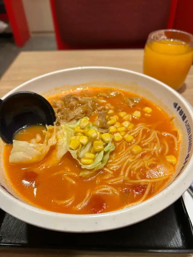 說真的,下午茶$38能吃味千拉麵還有免費橙汁是很便宜便。 所以都不批評太多。。橙汁確實新鮮好飲飲是新奇橙汁的味道。粟米生菜蕃茄粒和麵條也很多👍麵條幼細容易咀嚼都有味道。 牛肉份量也不少,只是有點薄同比較腍,但是都沒有什麼奇怪的味道正常的。 一切都正常,只是湯底不知道太耐沒有吃,有點怪,好像有啲汽水味的蕃茄湯。 總括來說,這個價錢吃到味千拉麵也是可以接受的。。還有值得一提,店舖橫裝紅噹噹的位置很漂亮查看更多