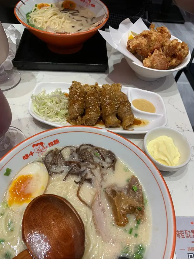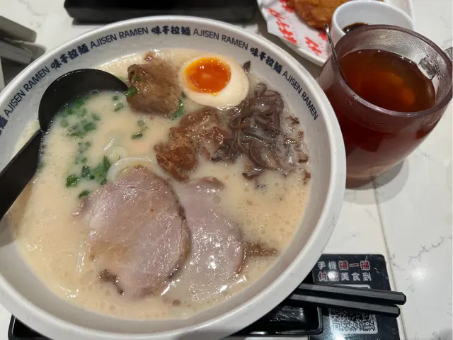 好耐冇食味千拉麵,講真本身我都係抱住「劣食」心態入去。預咗佢唔係百幾二百蚊拉麵嘅質素,我揀咗最平嘅一碗職人叉燒拉麵$48。如果嫌唔夠餸,可以再加錢加餸。麵底都可以要求軟、硬或正常。呢個價錢同你食碗譚仔都差唔多,嚟到份量都好足夠。味道質素,唔好同百幾二百蚊拉麵俾。個麵本身有半隻蛋+3片薄叉燒。真係偏薄,但係叉燒唔鞋口。我覺得佢嘅拉麵味道合乎佢價錢,但我鍾意佢地唔會偏咸同埋唔油。本身湯底可以加$5轉麻辣豚骨湯,我冇加錢,直接用返佢台面提供嘅辣油。唔好同麻辣比,但係佢個辣味都好食!^ 兒童餐嘅野菜薯餅,都OK,唔錯。因為同行有小朋友,所以都嗌咗份兒童餐$58。兒童餐有2款,仲有兒童餐玩具送。小朋友揀咗車仔款嘅食物,有碗拉麵有一片叉燒,另有八爪魚香腸一條、菜、蛋半隻、野菜薯餅、粟米、雞翼一隻、紫菜及飲品都算抵食,仲有玩具送。咁耐冇嚟,原來模式已經同以前唔一樣。而家係搵位坐低,掃QR code落單,即時俾錢,店員過一陣就上菜。個人覺得都唔錯,可以再返嚟encore.兩個人埋單免加一$106…查看更多