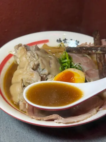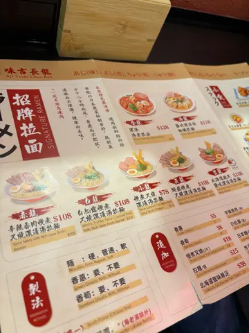 《味吉长龙》吉龙,北海道豚足盐味浓清汤拉面 🍜📍尖沙咀漆咸道南17-19号帝后广场地下7-8号舖第二次食呢间店,上次试左白龙,白松露慢煮叉烧浓清汤拉面,今次试另一款:吉龙,北海道豚足盐味浓清汤拉面 🍜首先讲个汤底。店家叫个汤底做 ”浓清汤”,我觉得好特别,唔系因为个名,系因为呢款浓清汤其实就系猪骨清汤。猪骨汤底十间有九间九都系做成博多风猪骨白汤形态,而猪骨「清」汤,而又做到又浓又稠又清澈,我就绝少响香港揾到。比起上次食,今次汤底嘅鲜味更加来得惊艳,因为上次款白龙加左松露。我一直都比较少拣加左松露或樱花虾嘅面款,因为只要有佢地,其他味道多数会被盖过。而今次款面,我就拣左淡酱油口味,而酱油味不但唔会盖过猪骨鲜味,仲起左相当嘅提鲜作用,我第一啖饮个汤心入面真系哗左一声!另外,比起上次食,今次汤嘅甜味明显地降低左,对于我呢类唔喜欢甜汤头嘅人来讲,实在更讨喜。面条方面,中细,微曲,偏黄,口味扎实,面味够强,配酱油味几夹。再讲具材,重点当然系猪脚啦!我本身偏爱炆得又稔又烂嘅猪脚,好似食猪骨煲入面d咁。而呢度嘅猪脚正正符合我口味,调味刚好,又够胶。猪叉烧方面,比上次今次明显改善左。上次略干柴,但今次够粉嫩,肉味又够鲜够甘香,好好食。虽然可能系巧合唔定,今次碗面嘅质素明显比上次有改善,我就相当满意,亦乜都清晒完食,除左d猪骨 😂。…查看更多