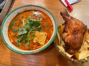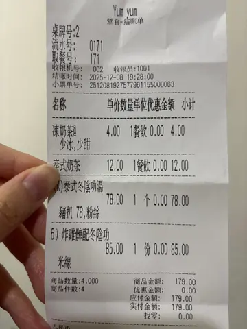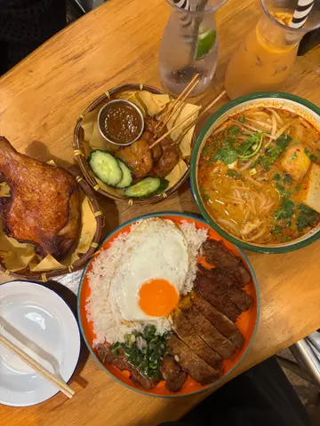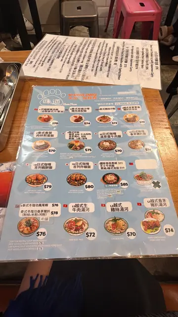 餐厅:味道地点:上环毕街菜式:东南亚菜餐牌:饭、串烧、面、乌冬、汤粉、沙律,送指定热饮一杯,都好多选择。冻饮加$4,汽水加$7,特饮加$12。免加一。价钱实惠。越式香茅葱油猪扒煎蛋饭 $70猪扒超大块切开8件,方便食用,整得皮少少脆,而肉质好淋,猪味浓。伴有大大堆白饭,份量超多,面头配有一只煎得香脆同有少少蛋汁既鸡蛋,蛋汁可以捞饭。伴有葱油,仲可以自己加枱上豉油调味。炸鸡脾配泰式冬阴功配金边粉 $85泰式冬阴功个汤好香,味道酸酸辣辣,超醒胃。金边粉幼身又淋又挂汤,其他配料有鱼蛋一块,豆卜,草菇,芽菜,葱花等,面头加上芫荽,带黎多重口感味道。金边粉可以拣粉丝,米粉,河粉,公仔面,拉面加$5。炸鸡脾另上,好大只,炸得皮薄脆肉嫩,好香口,有好多肉食。泰式炭烧沙嗲猪肉串 $65泰式炭烧沙嗲猪肉串一客四串,味道甜甜地,烧得少少脆皮,伴有青瓜同辣椒。另上甜甜地既沙嗲酱,花生味好浓。青柠檬梳打 加$12呢度饮品用好特别樽仔上。青柠檬梳打完全唔甜,好解渴又健康。泰式奶茶 加$12泰式奶茶甜度适中,口感滑溜。今餐食物唔错,最紧要价钱合理。中上环黎讲好抵食。小店有十张枱左右,繁忙时间要搭枱。…Read More