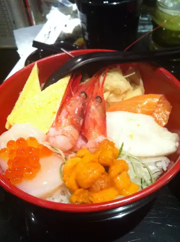 家人和我习惯在任何季节都久不久光顾这小店已多年, 虽然没什么" 豪装" 或 "美女" , 但胜在细心兼新鲜 , 喜爱诸款熟食寿司的虽然不是我, 但为求尝试真"味" 都会破例 : 例如鳗鱼尚算多肉之级数; 层次富口感的北寄贝沙律最合我意, 王者之选 以带子必食 : 鲜甜软滑, 三文鱼肥美 , 而海胆寿司.尚佳; 玉子烧虽则平凡, 但芒果在夏日中的确抢镜