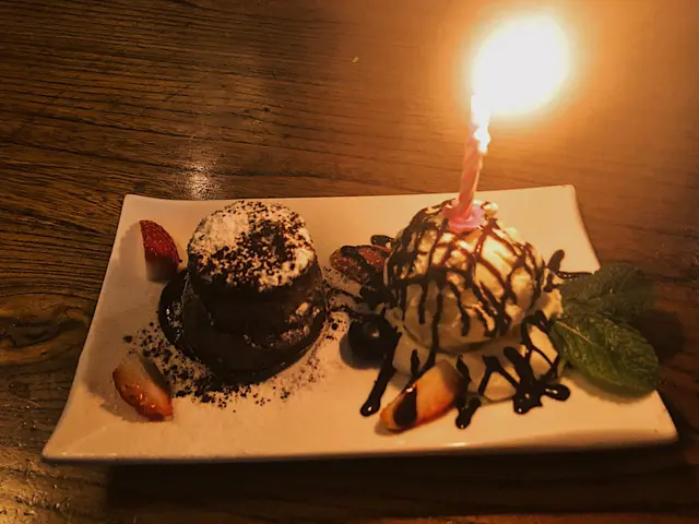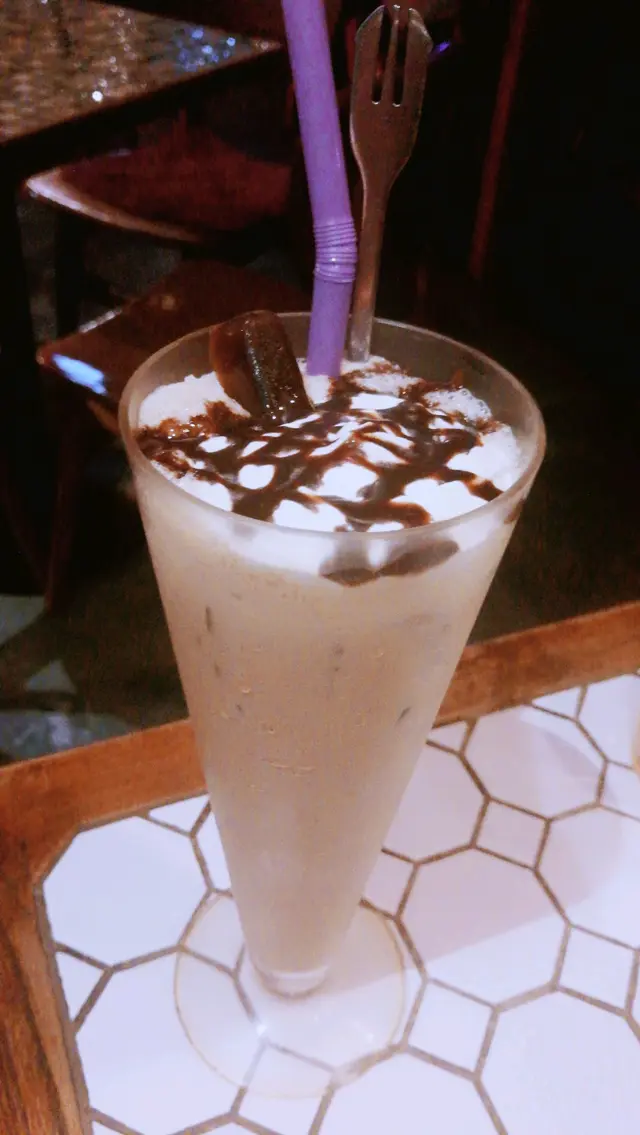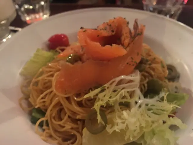 旺角老地方,由中學開始去的咖啡店。幾年來人流一如以往。仍然是一間非常適合閒聊消遣的地方,沒有限時、有戶外座位。食物和飲品選擇算多。昏暗的燈光,70年代的擺設。五層樓的咖啡店樓層,有某些樓層間中會有live band show.點了三個主食。星星鴨肉雞蛋薄餅味道可以接受,但薄餅餅底有點硬。有點難咬。煎帶子海鮮忌廉汁墨魚意粉帶子沒有煎香。忌廉汁加墨魚意粉味道搭配不錯,也不會滿口墨汁。但油脂感蠻重。檸檬汁煙三文魚冷麵必食之選— 帶帶酸味的醬汁非常開胃,三文魚砌成玫瑰花令賣相加分。冷麵亦不算太乾身。甜品 叫了心太軟味道和品質都中上。心太軟配雲厘拿雪糕是經典和永遠不會過時。飲品好像是桃子xx果茶。總結,服務質素是比已往下降了。但是這裡還是一個聊天的好地方。…查看更多